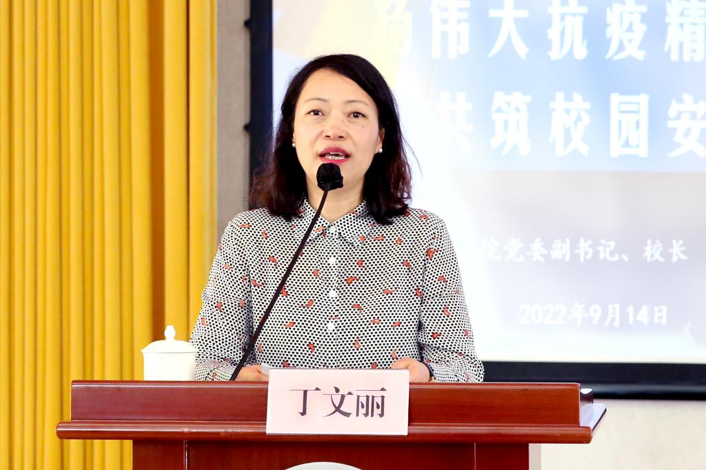 丁文丽校长表示,中国的抗疫斗争,充分展现了中国精神、中国力量、中国担当,我们始终坚持严格防控,使我国成为新冠肺炎发病率最低、死亡人数最少的国家。在全校师生的共同努力下,学校疫情防控形势总体平稳,希望同学们大力弘扬伟大抗疫精神,用抗疫精神勉励自己加强学习,苦练为人民服务的本领;积极践行疫情防控责任担当,遵守学校疫情防控要求,广泛宣传疫情防控知识,在做好自身防护和完成学业的同时,积极投身到志愿服务中,坚决守住校园不发生聚集性疫情的底线,共同维护好校园的安全稳定。