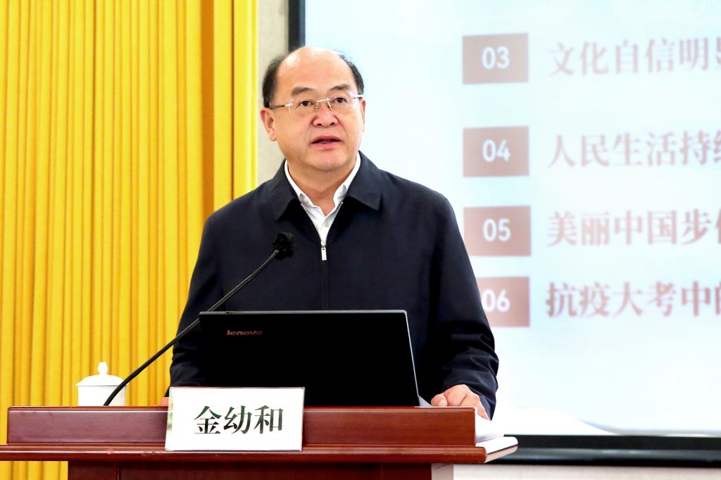 金幼和书记指出,即将召开的党的二十大,是在进入全面建设社会主义现代化国家新征程的关键时刻召开的一次十分重要的大会,将科学谋划未来5年乃至更长时期党和国家事业发展的目标任务和大政方针,事关党和国家事业继往开来,事关中国特色社会主义前途命运,事关中华民族伟大复兴。新时代中国青年身逢中华民族发展的最好时期,既面临着难得的建功立业的人生际遇,也面临着“天将降大任于斯人”的时代使命。他勉励同学们,作为新时代的青年,要牢记习近平总书记“在报效祖国过程中成长成才”的殷切嘱托,志存高远、忠于祖国,努力做新时代具有远大理想和坚定信念的爱国者;敢于担当、勇于奋斗,努力做新时代具有责任意识和创新精神的建设者;勤奋学习、锤炼身心,努力做新时代具有过硬本领和高尚品格的接班人。以功成不必在我的精神境界和功成必定有我的历史担当,在实现中华民族伟大复兴中国梦的新征程上留下无悔的奋斗足迹。