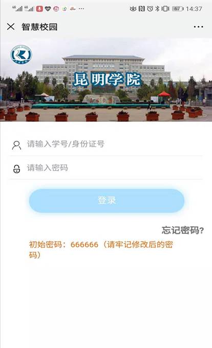 第三步:输入学号和密码(初始密码666666)进行登录,初次登录必须修改密码-->输入手机号-->获取短信验证码-->设置新密码(修改后的密码请务必牢记,将用于今后年度缴费操作)。